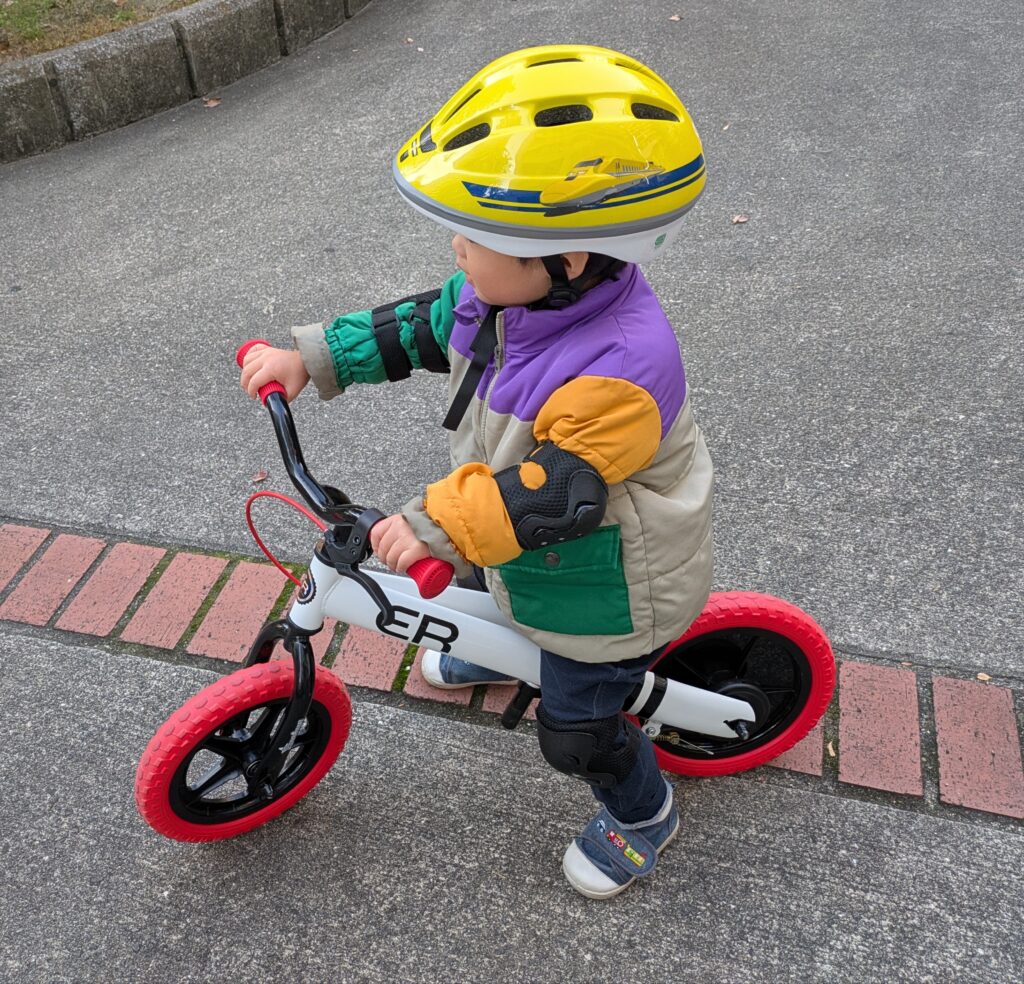 キックバイクを3歳のお誕生日にプレゼントでもらった息子あさくん。